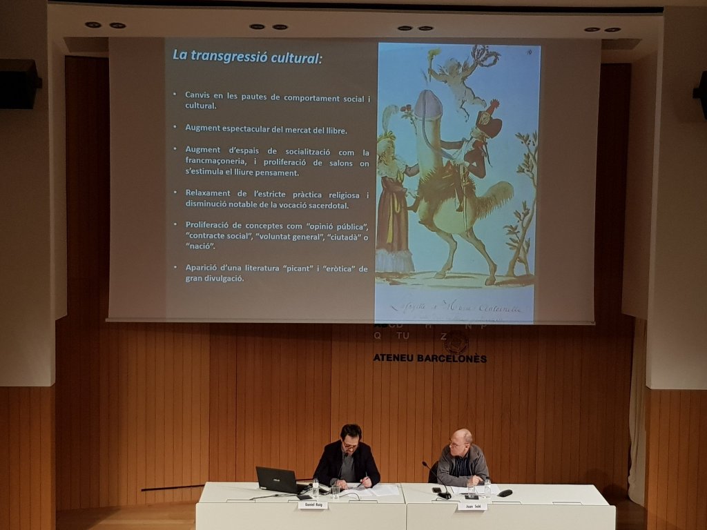 Amb aquest esperit, hem organitzat 12 cicles temporals, des de la Secció d’Història i, també, hem promogut un cicle intersectorial, que va coordinar la Comissió de Cultura de l’Ateneu, amb la participació de la majoria de les seccions de l’Ateneu: De la Revolució americana a la Revolució Francesa.