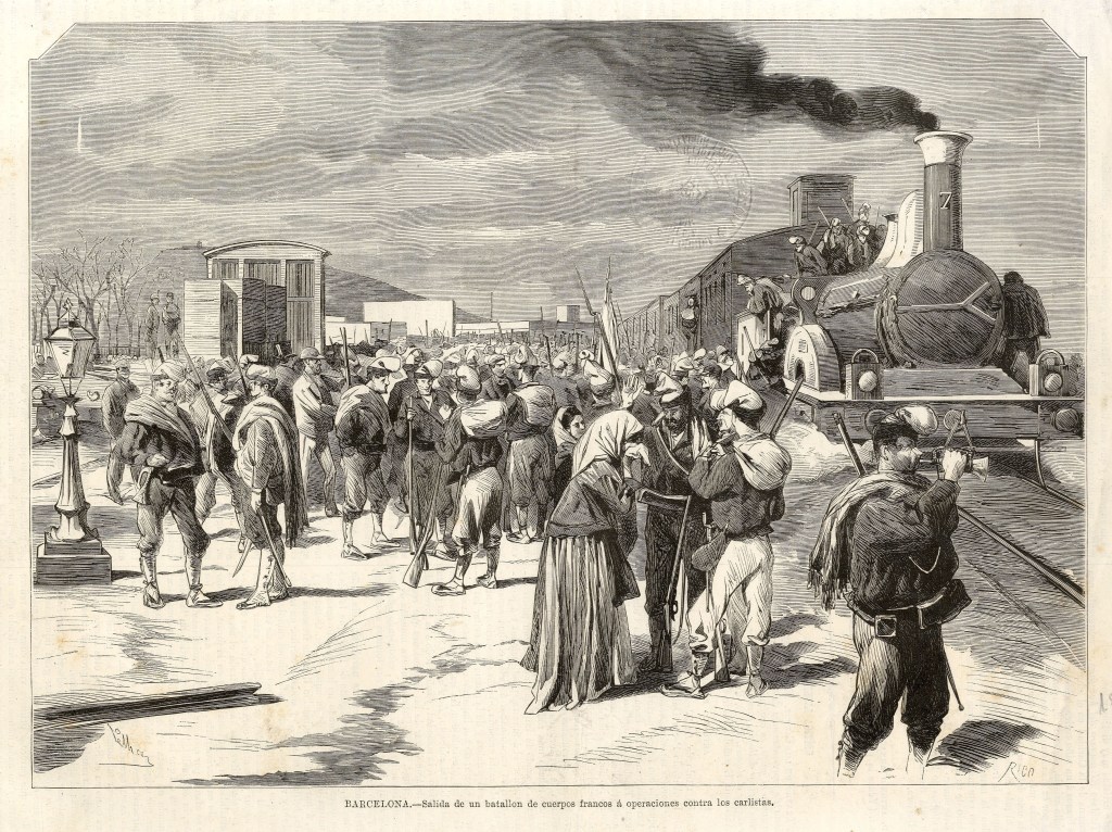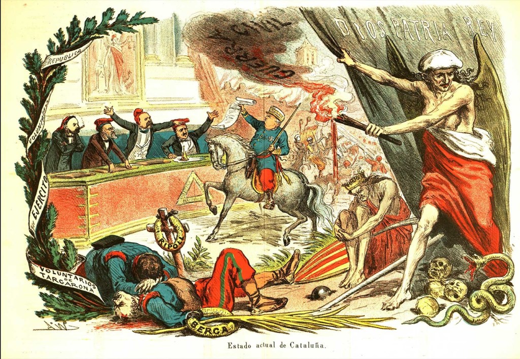 Els primers mesos de 1873, els avenços militars dels carlins són importants. La Diputació, en sessió permanent organitza el dia 12 de febrer una Comissió d’Armament i Defensa per organitzar la lluita contra els carlins, mentre a les Corts s’aboleixen les quintes el 17 de febrer i es proclama l’Exèrcit voluntari, resolució que es retirarà al cap de pocs mesos. La Diputació dissol l’exèrcit de la província i a Madrid s’intenten crear Batallons Francs de Voluntaris contra els carlins i la Diputació crea el Cos de Guies de la Diputació el 21 de març. Amb el retrocés militar es decreta el 4 de juliol el final de l’Exèrcit voluntari i es fa una mobilització dels mossos en la reserva per a lluitar contra els carlins des d’estructures d’exèrcit regular. En aquest clima, el dia 12 de juliol s’inicia el moviment cantonalista que no tindrà ressò a Catalunya i es produeix la dimissió de Pi i Margall com a segon president de la República.