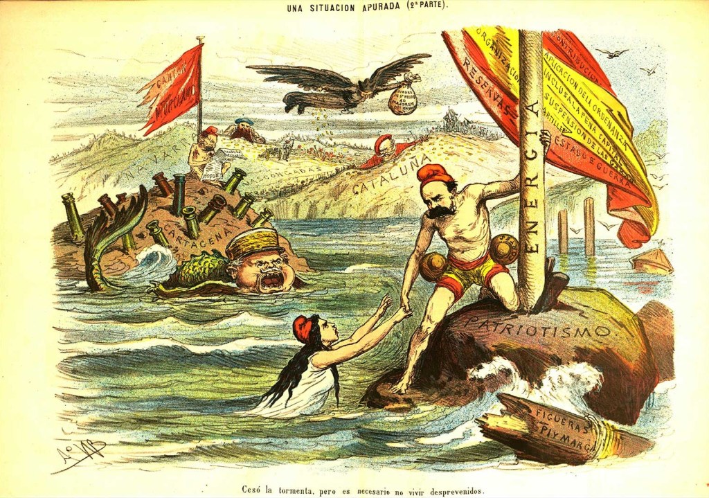 “excito en nombre del Consejo el patriotismo de todos los individuos de la Junta y de V. mismo para que comprendiendo las graves dificultades que nos rodean no quieran poner una más proclamando el cantón catalán”.