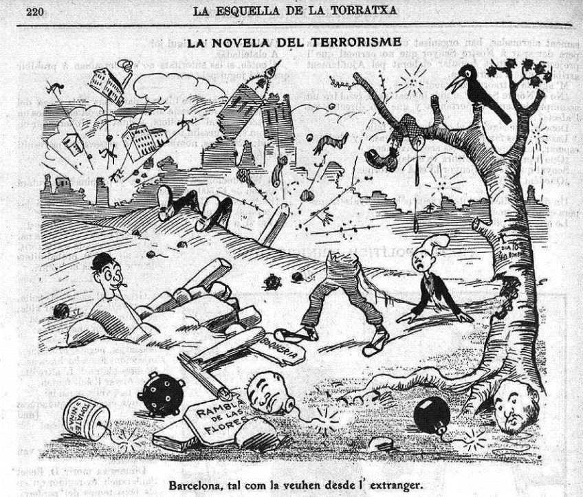 Durant aquests anys violents, l’Esquella de la Torratxa publicarà vinyetes iròniques en les que es veia que per a les classes benestants de la Belle Époque, el terrorisme quedava lluny de les seves preocupacions, mentre, des de l’estranger, la visió de Barcelona era la ciutat de foc i era vista com un autèntic desastre.