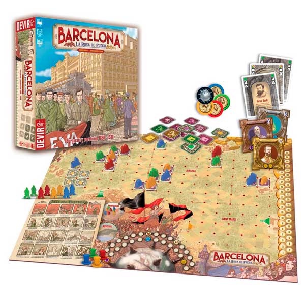 La voluntat d’aquest joc és plantejar les claus històriques del creixement de la ciutat, després que enderroqués les muralles i anés incorporant els municipis del voltant. “Vam intentar fer un joc que reflectís, d’una banda la potència de Barcelona construint-se, després que caiguessin les muralles, i el tema de la revolució”, explica Joaquim Dorca, director de Devir Iberia. El tauler de Barcelona, la Rosa de Foc té, òbviament, la forma de la capital catalana. I els fonaments d’aquest joc s’inspiren en les bases de l’explosiva història de la ciutat de Barcelona: un Raval revolucionari, un Eixample burgès, un Montjuïc ple de militars encarregats de controlar la ciutat, una zona de barricades… La clau d’aquest joc és aconseguir fortuna i prestigi, però sense incrementar la conflictivitat social, que podria dur a una revolució.