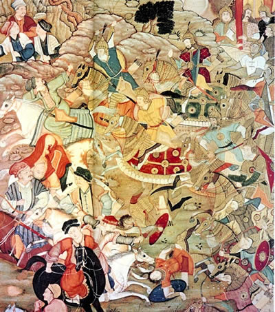 Detall de la il·lustració de History of the Moghuls, un text indi del segle XVII , Biblioteca del Palau de Gulestan, Teheran