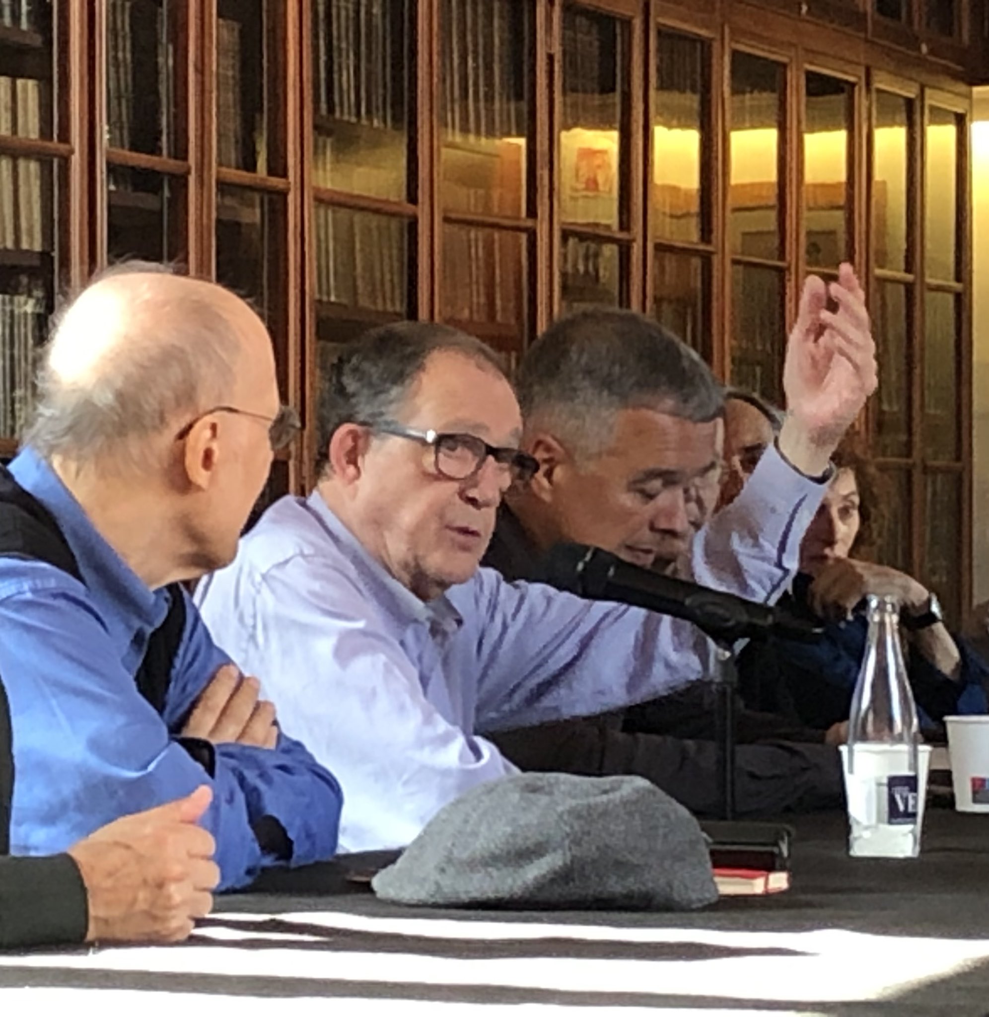 Jordi Llovet a la Tertúlia d’Amics de la Història, entre Ramon Ravell i Joan Solé Camardons. Ateneu Barclonès 15 d’abril de 2024
