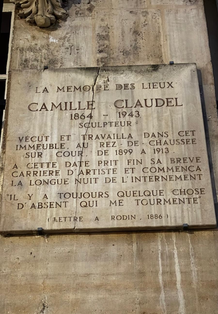Plaque Commémorative Camille Claudel. Adreça: 19 Quai de Bourbon 75004 París, France. Al costat del Pont Marie a Saint Louis en l’Île. Allí va tenir el seu taller de 1889 a 1913 data en la que ja va ser internada en un psiquiàtric. Primer a París i després a Avinyó.