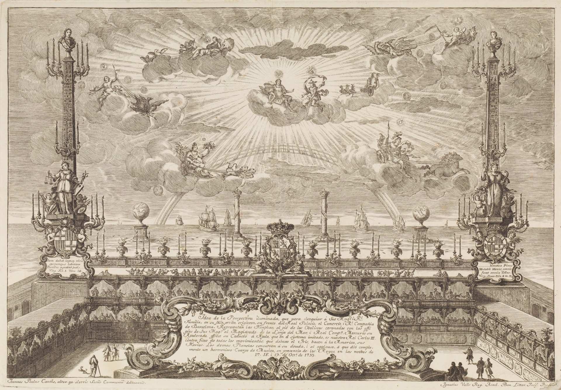 Dibuix de José Camarón. Gravat per Pasqual Pere Moles el 1779 per a la coberta de les Memorias históricas d’Antoni de Capmany