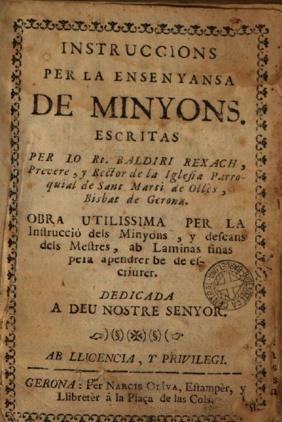 Com queda la identitat dels catalans? Evidentment queda afectada, però hi ha testimonis de la persistència com el text de Baldiri Reixac de 1749 «Instruccions per la ensenyansa de minyons” on defensa també l’educació de les dones, de les nenes al costat dels nens. Cat tenir en compte que la “Real Cédula de Aranjuez” de 1768 obligava a utilitzar el castellà a les escoles, que l’edició de llibres en català havia baixat moltíssim i que en aquest context el català era una mena de llengua morta – viva, que resistia. Pau Ignasi Dalmases, un comerciant que compra llibres per Europa, va crear una bona biblioteca al Palau Dalmases al carrer Montcada. És el creador de la Real Acadèmia de Bones Lletres, institució important en època austriacista i que en època posterior tingué una doble funció: defensa de la llengua i fer una història de Catalunya que no arribà a fer-se. Apareixen senyals identitaris com el que ara explico: una marca de fàbrica que situa l’escut de la ciutat en lloc preeminent o un altre que titula els productes “Fàbrica de Catalunya”, en una forma de recordar el país.